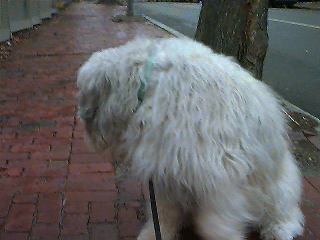 Just then, Daisy, his favorite doggy girlfriend, comes strolling around the corner. Milo jumps up, and proceeds to drag mom (who has absolutely no control) down the street to greet her.